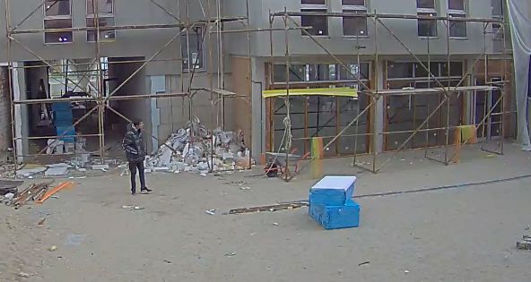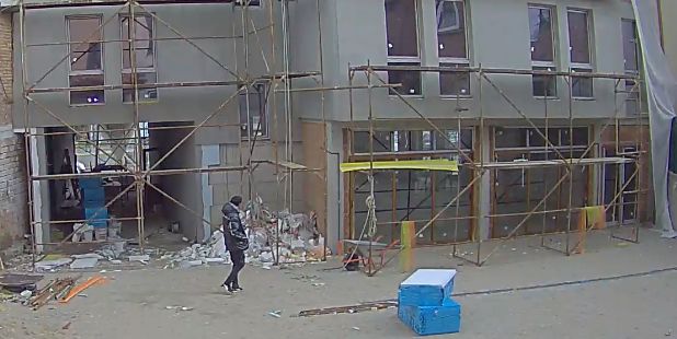 Кадри от охранителните камери на градежа, който се намира на бул. „ Шести септември” 176, демонстрират по какъв начин закононарушението е осъществено денем в двора на парцела. Мъжът влиза, оглежда се, а служащите без да подозират правят действия по етажите. Така апашът незабележимо взима кабелите, които са завити на макари и напуща мястото.