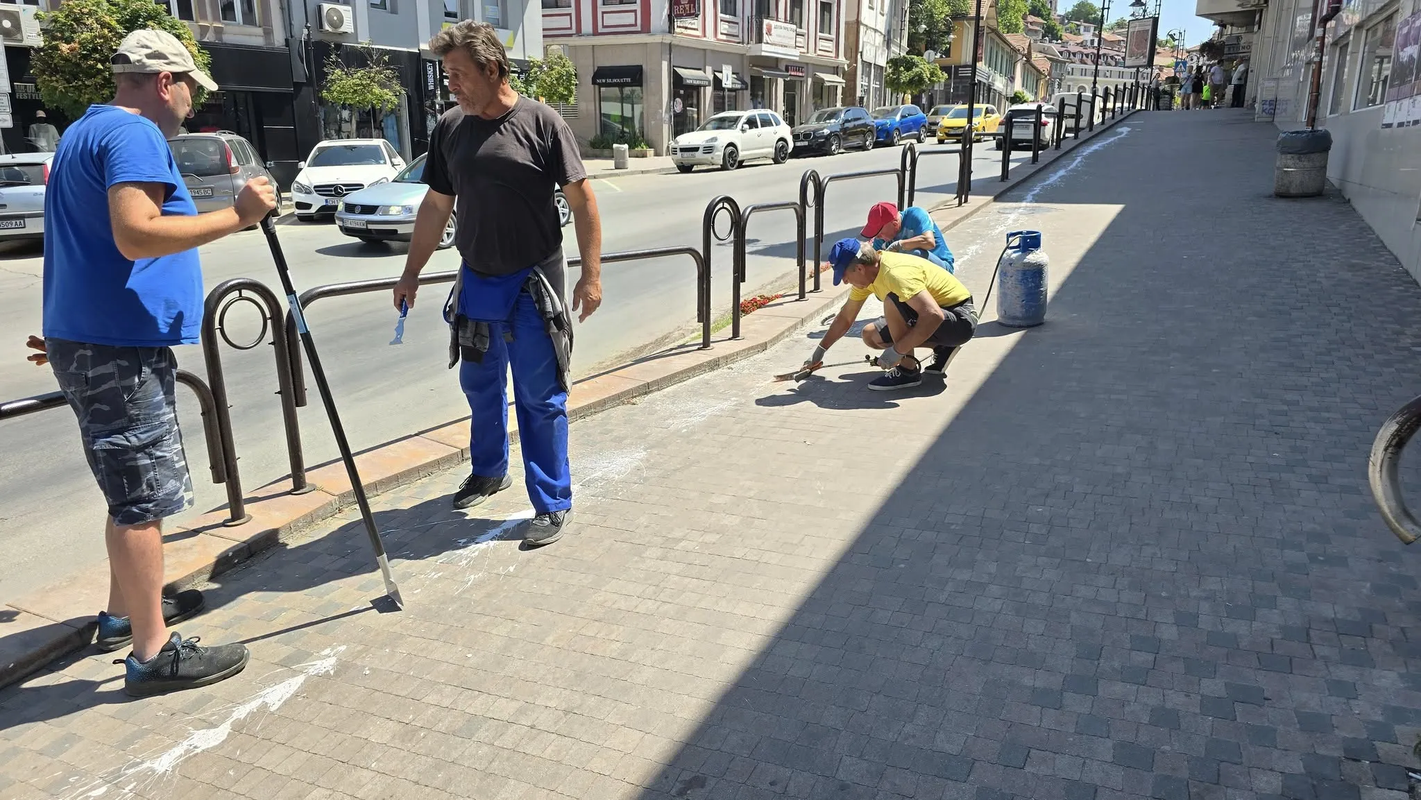 Вандал заля с бяла боя тротоари във Велико Търново, заснеха го камери ВИДЕО