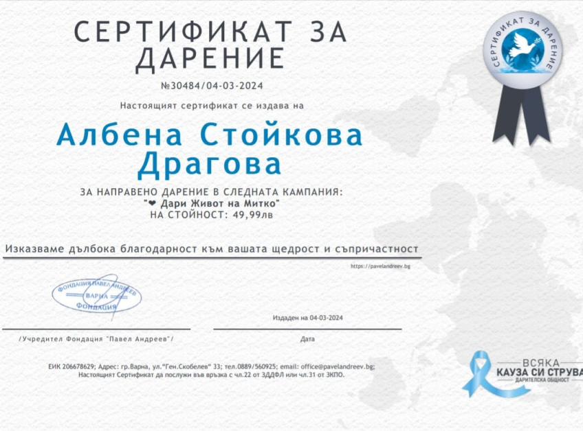 " Много, доста ти благодаря още веднъж за помощта! Смятам, че е хубаво всички да схванат за теб, че си направил положително дело! ", прибавя тя.