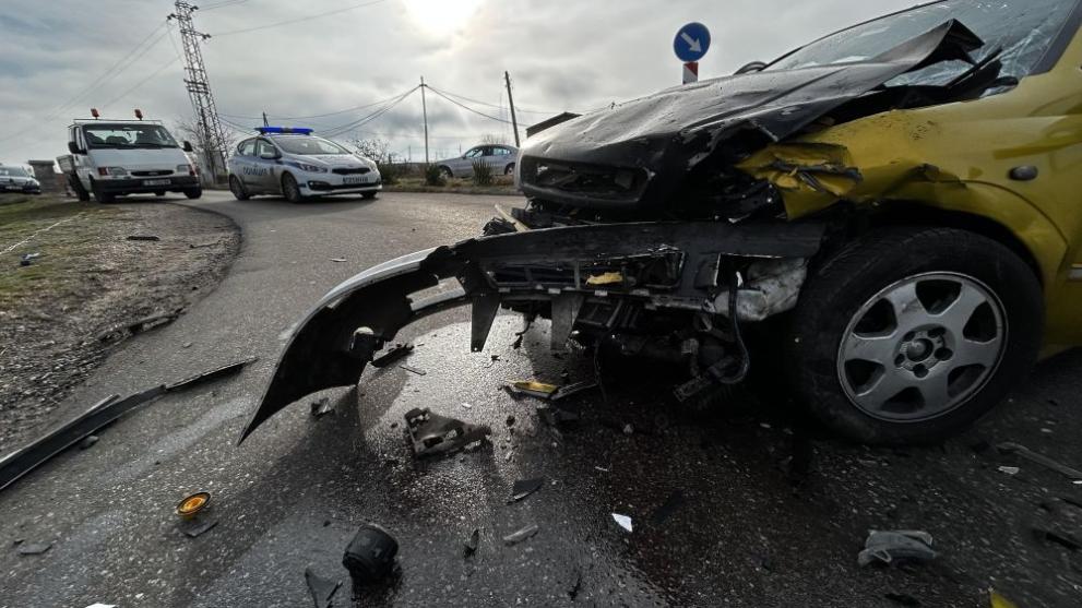 В този миг различен автомобил прави маневра завой на ляво към село Книжовник. Последвал е преден конфликт.