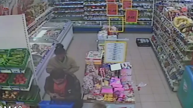 Охранителните камери в магазина са снимали мъж и жена, които обикалят магазина и крият пакетирани салами под облеклата си. Минути по-късно бдителната касиерка ги разкрива и ги стопира. После заключва вратата и подава сигнал в полицията.