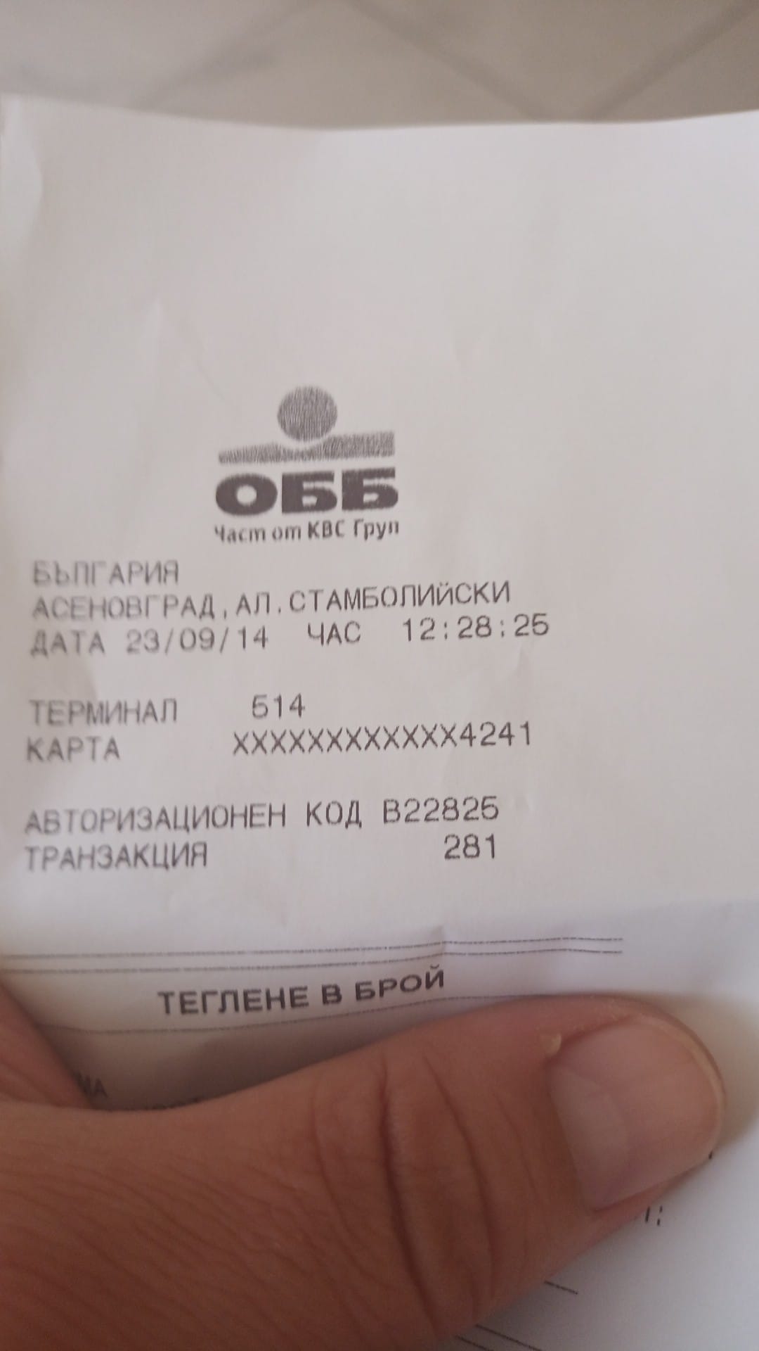 Асеновградчаинът е добавил и документът от тегленето, на който се вижда адресът и времето на транзакцията.