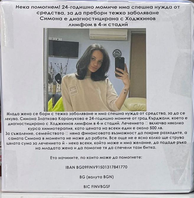 Кутията за дарения е била сложена за 24-годишно момиче, което се бори с тежко заболяване. Вижте по какъв начин можете да помогнете: