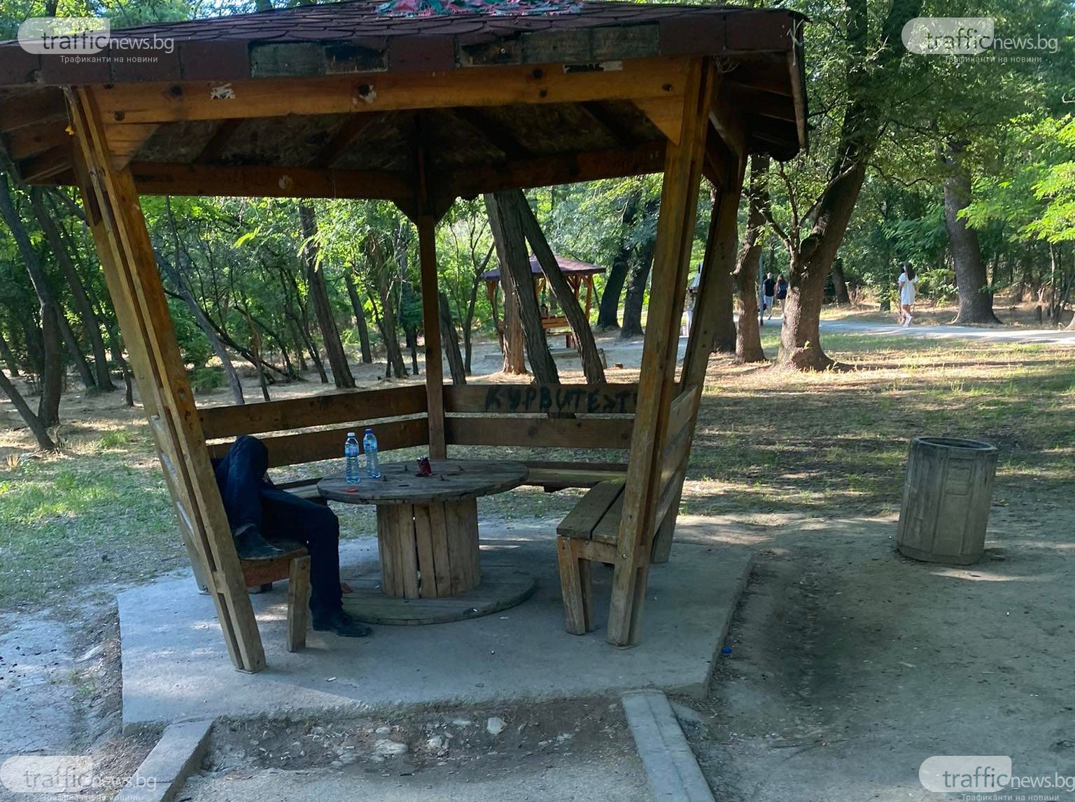 Мъж съвсем в безсъзнание лежи на една от беседките в Лаута, а до него изсушена бутилка с алкохол. Това е ежедневна гледа до барбекютата в огромния пловдивски парк, като гости даже не обръщат внимание на гледката, а просто подминават зоната.