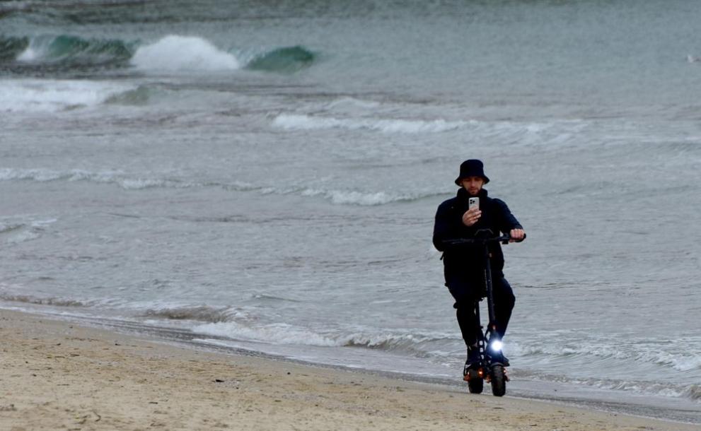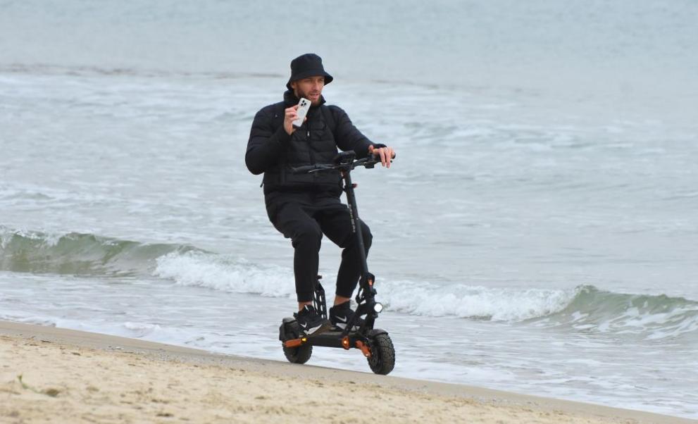 С телефон в едната ръка и кормило в другата – мъж прекоси варненски плаж с тротинетка