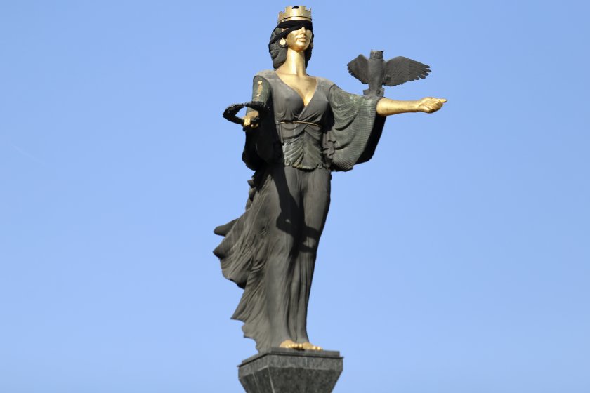 Мъж постави превръзка на очите на статуята на Света София в центъра на столицата.