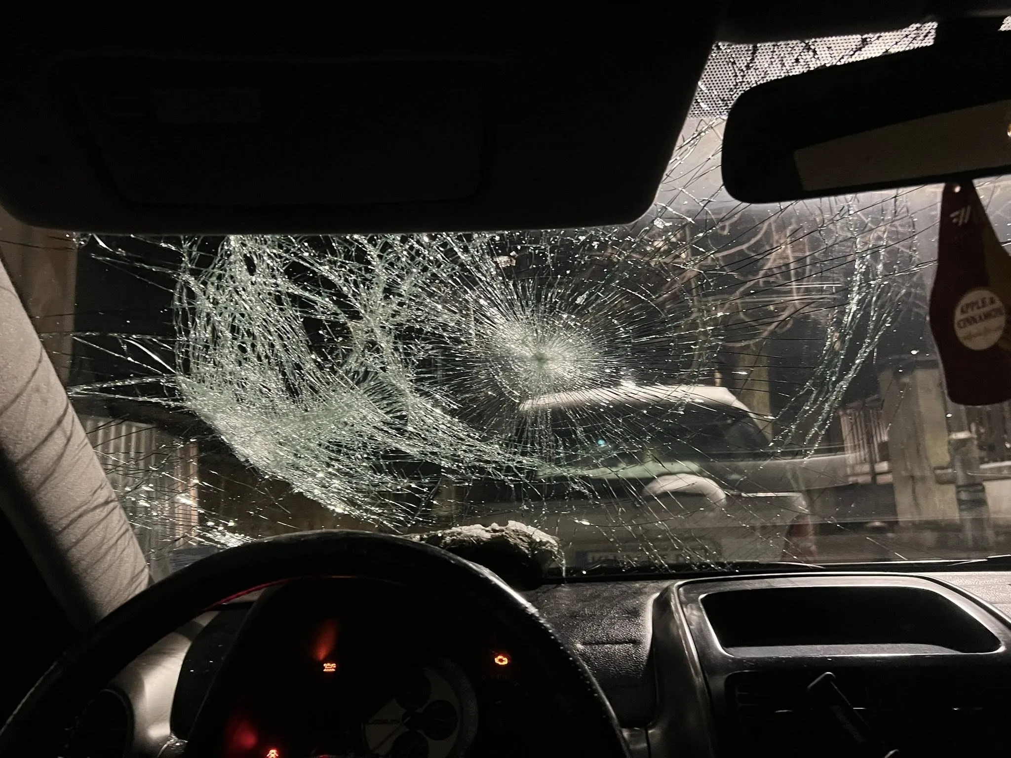 Малко по-късно мъжът се върнал и, по изказвания на Колев, блъснал с камък предното стъкло на автомобила, до момента в който той се намирал вътре. Стъклото не се счупило, само че било развалено.