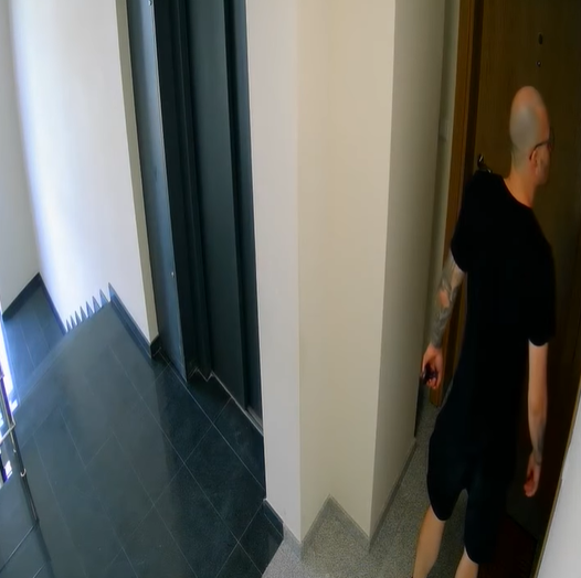 В обществената мрежа Фейсбук Ивайло Димитров показа записи от камера за видеонаблюдение, на които се вижда по какъв начин мъж с гола глава опитва да отвори входните порти на жилищата, употребявайки разнообразни ключове.