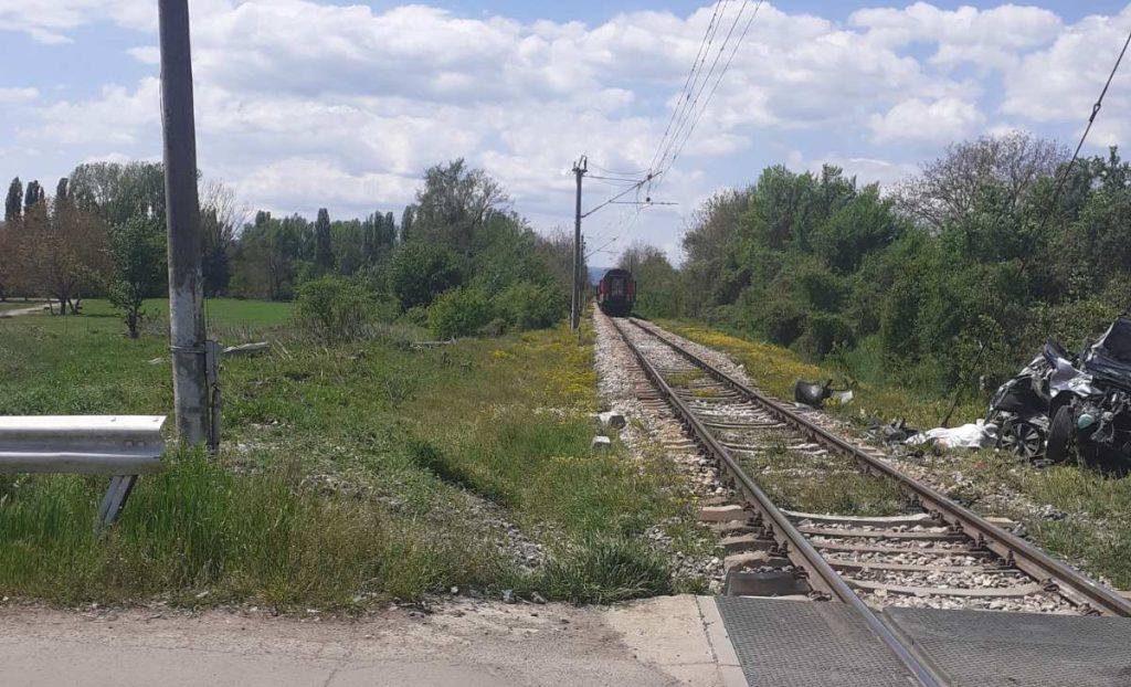 Влак блъсна кола на прелез, загина мъж СНИМКИ