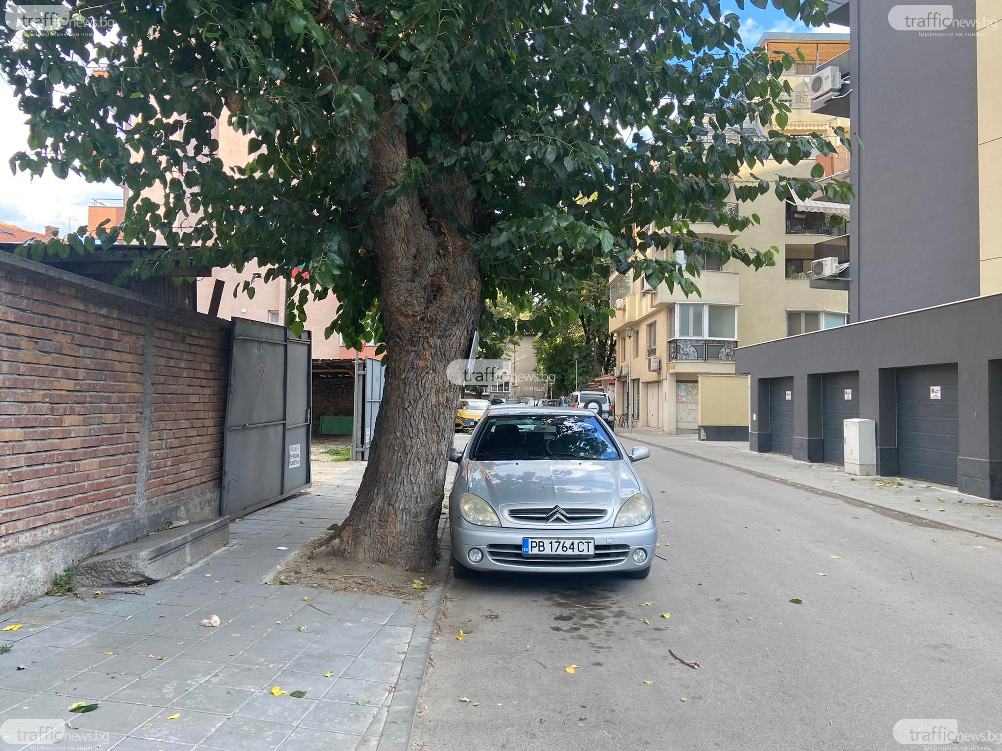 И към този миг обаче табелата от Община Пловдив, гласяща че нарушителите се подвигат с паяк наложително, стои закачена на дървото, което също е в прорез със закона.