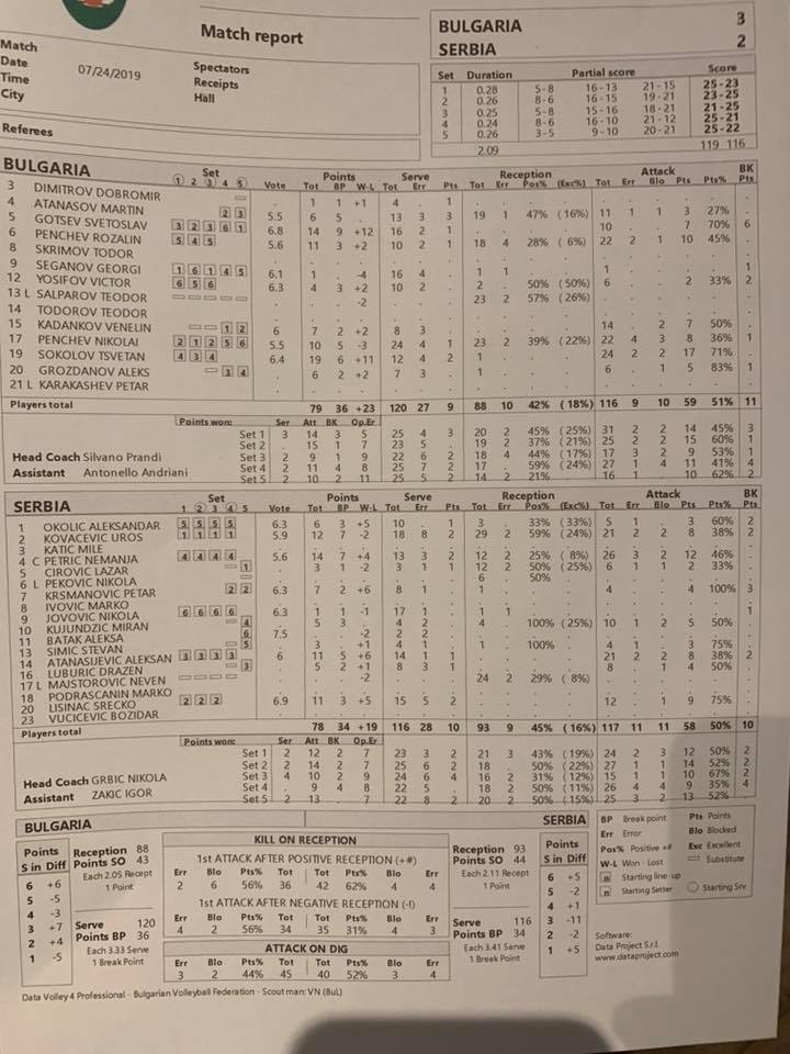 Мъжкият ни нацонален тим завоюва първата контрола със Сърбия в Белград. Възпитаниците на Силвано Пранди се оправиха с 3:2 (25:23, 23:25, 21:25, 25:21, 25:22) след над 2 часа и половина игра. Нашите изоставаха с 1:2 гейма, само че изравниха и по-късно взеха петата част, която се игра до 25 т.