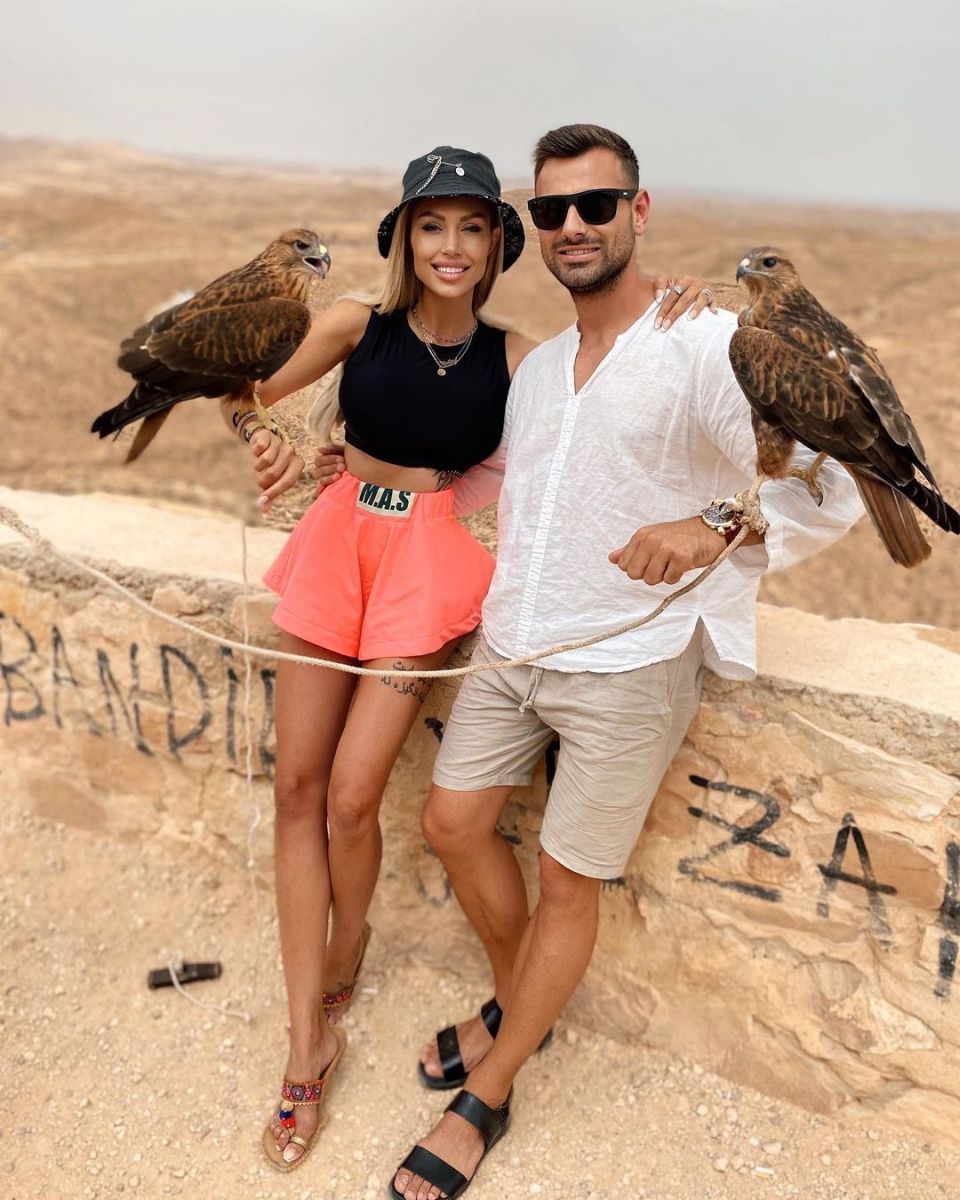 Финес инструкторът и обичаната му са отседнали в първокласен хотел, от чийто голям открит басейн с естествени палми някогашната участничка в предаването „ VIP Brother “ качи във виртуалното пространство няколко провокативни фотографии, на които театралничи в мощно изрязан черен бански, показващ на фена извивките на нейното тяло.