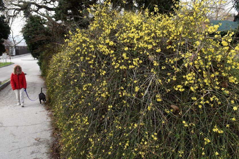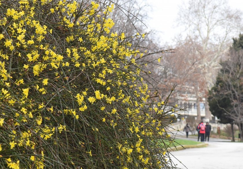 Макар да е средата на януари жасминовите шубраци в Морската градина цъфнаха с красиви жълти цветове.