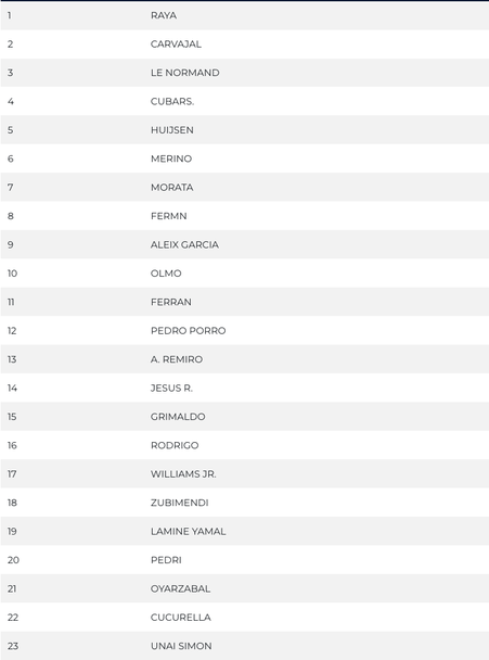 Интересното е, че фланелката с №9 не отива при никого от централните нападатели, а дадена на халфа на Байер (Леверкузен)Алейш Гарсия. По принцип в селекцията на Испания тя е обичаната на Гави, само че той се контузи и отпадна от групата.