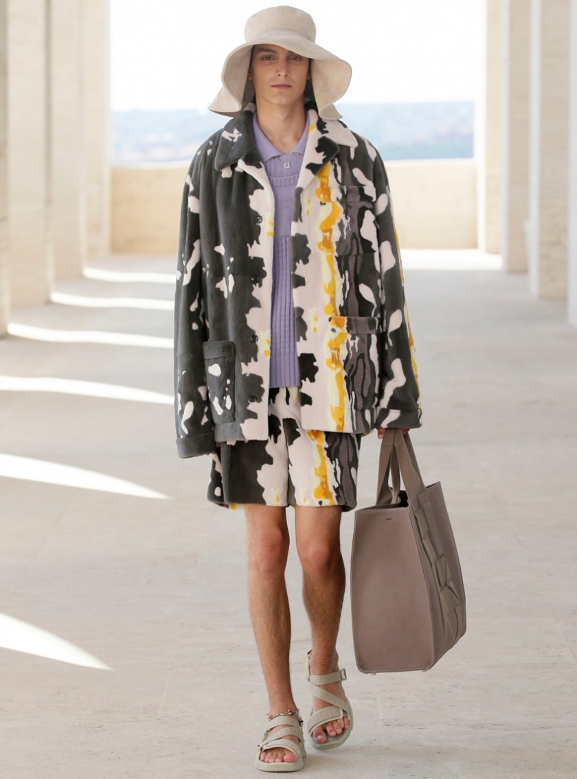 От началото на пандемията от Ковид-19 дизайнерите оповестиха, че бъдещето на мъжкото облекло е комбиниране от публична грациозност и привлекателността на небрежния контур. " Прада " обаче избра " дрешник за офиса ", въпреки и сбирката да съчета строгостта с удобството. Подгъвите и горната част на ръкавите бяха украсени с мохер. Някои от тях подчертаваха раменете, а коланът беше компактно притегнат към талията.