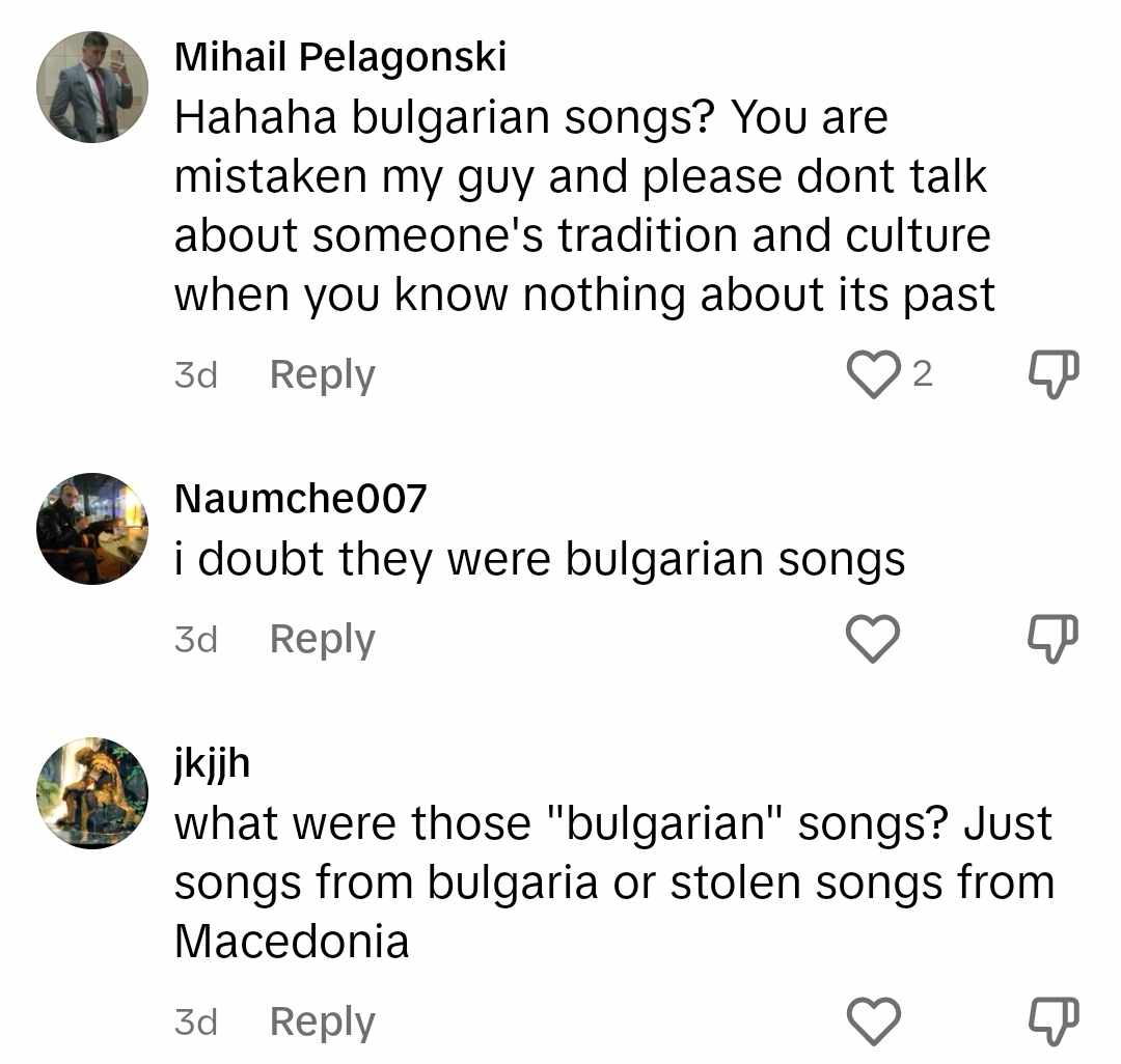 Казаното от нея отприщи вълна от мнения. Потребители на Tik-Tok означават, че песните, пускани в ресторанта, не са български, а македонски. И по този начин още веднъж се стигна до напрежение сред българи и македонци. Въпреки това е значимо да се означи, че доста българи и македонци имат другарски и мирни взаимоотношения. Много хора от двете народи се стремят към превъзмогване на разногласията и поощряване на съдействие и разговор с цел да се реализира по-добро взаимно съгласие.