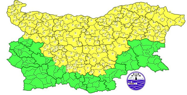 Жълт код за мощен и плевел вятър е в действие в по-голямата част от страната в понеделник, разгласи Национален институт по метеорология и хидрология. Очаква се скоростта напразно да доближава 70-90 километра в час.