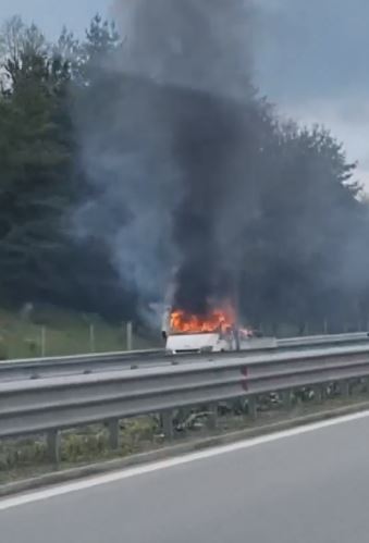 Малък камион се запали на АМ Тракия СНИМКИ