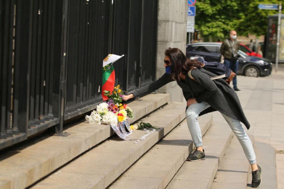 Десетки жители се проведоха през обществените мрежи и пристигнаха да слагат цвете на стълбите на постройката и да изразят готовността си, че ще продължат да упорстват виновника за гибелта на известния публицист да получи съответна присъда.