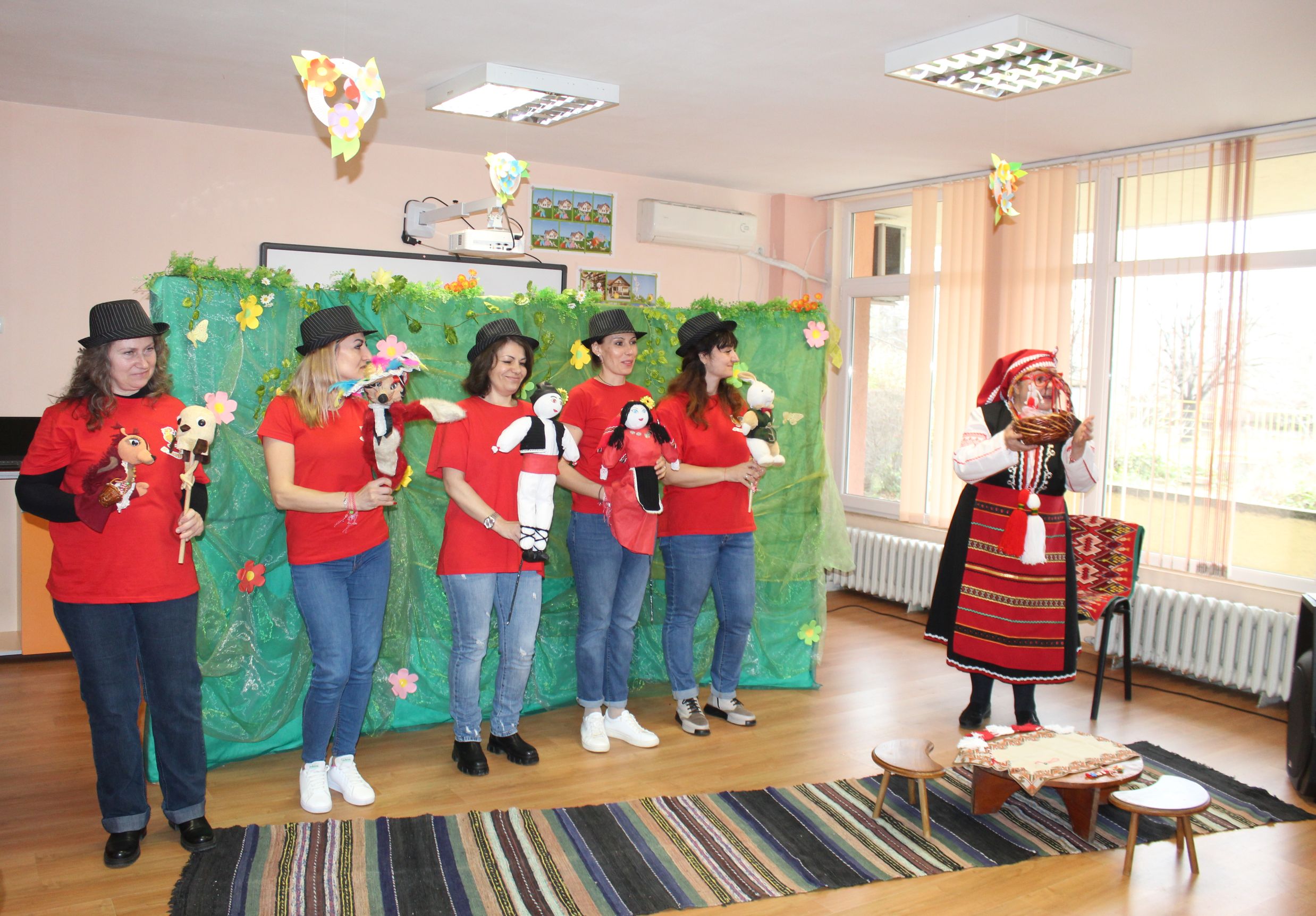 Празничното празненство стартира с куклен спектакъл „ Преждата на Баба Марта “, квалифициран и показан от педагозите на детското заведение. Приказните герои - Лиса, Рунтавелка, Зайко, Врабчо, Пижо и Пенда забавляваха децата със своята увлекателна история. Накрая, облечена в национална носия и с цялостна кошница в ръка, дойде Баба Марта. Децата я посрещнаха с доста наслада и неспокойствие. На малчуганите тя описа легендата за този остарял български бит. Те бяха научили доста стихчета и песнички, с които я зарадваха. Развеселена и удовлетворена от топлото посрещане на децата, Баба Марта им подари обичайната българска мартеничка. И даде обещание, че ще прогони студената зима, с цел да се радваме на слънчева и топла пролет.