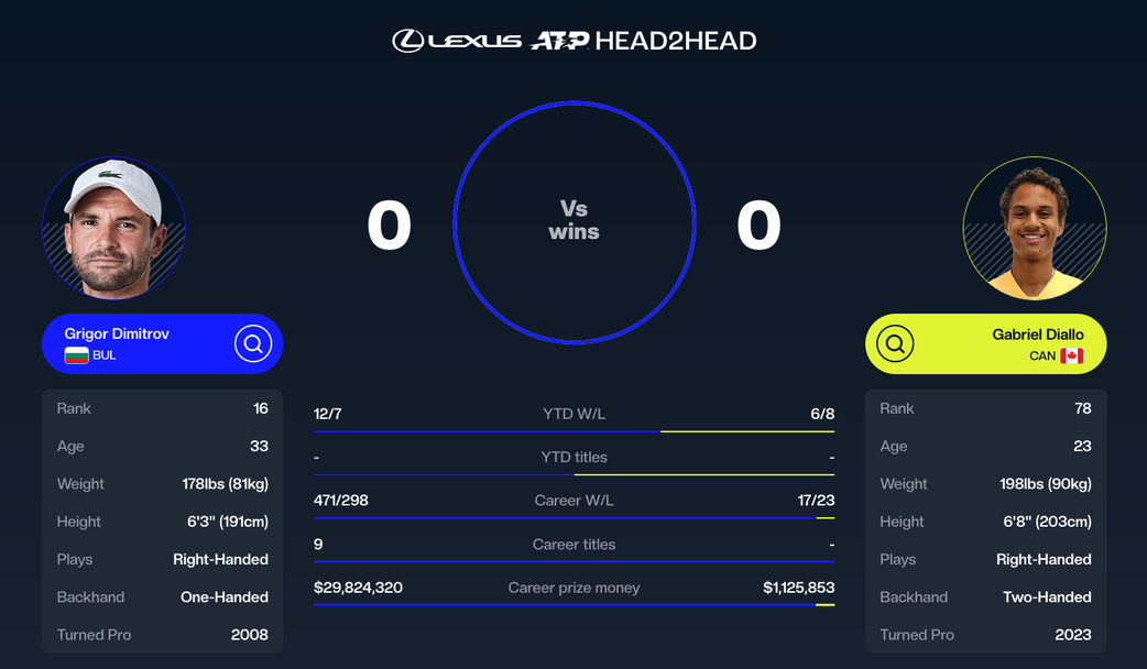Диало взе участие в Мадрид като “щастлив губещ ”, като той и Григор не са се срещали на корта досега. Любопитно е, че младият канадец имаше единствено една победа на клей в главната скица на шампионат от АТР Тура преди идването си в испанската столица. В Мадрид обаче той към този момент е в серия от три следващи триумфа, като в първия кръг в профил Зизу Бергс.