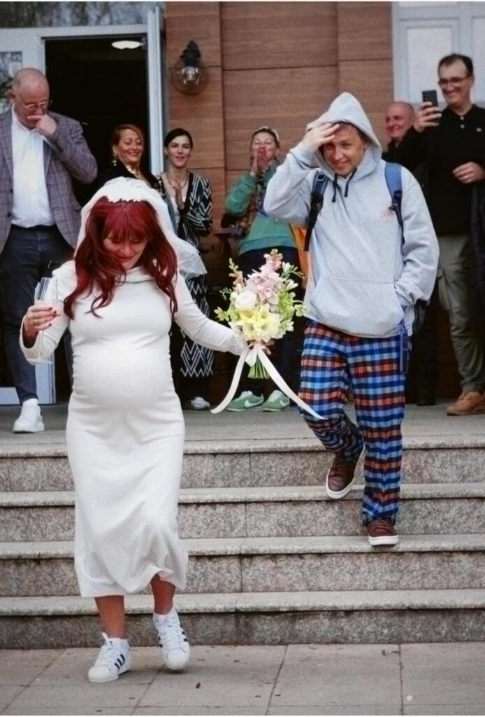 Малко преди да роди първото си дете, Рут Колева сподели „ Да! ” на обичания си мъж. Булката се появи с бяла рокля, прилепнала по бременното ѝ коремче, с маратонки и воал, а младоженецът с панталон, който извънредно доста наподобява на долната част на пижама.