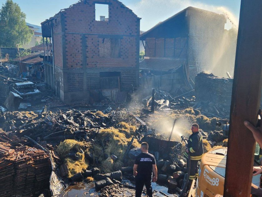 Пожар изпепели 3 плевни, помещение и покрива на къща в град Костандово