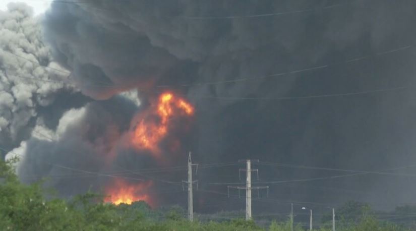 Пожар и експлозии в петролна база, причинени от мълния ВИДЕО и СНИМКА