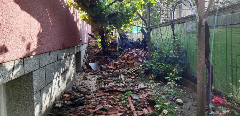 Мълния възпламени къща в Казанлък. Обитателите ѝ са съумели да се спасят от стихията, само че къщата е унищожена.