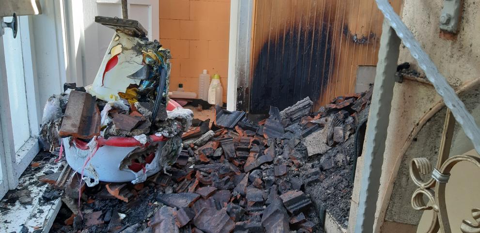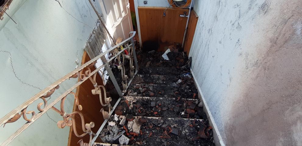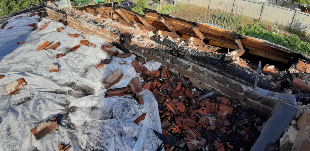 Целият покрив на къщата е изумен, а вътрешността ѝ е наводнена.