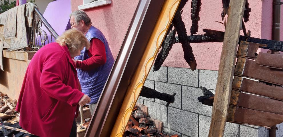 БГНЕС Стихията връхлита парцела на Михаил и неговата брачна половинка Красимира точно на рождения му ден. Съседи подават сигнал на телефон 112. Нещастието се случва през нощта, в 02.20 часа.-->