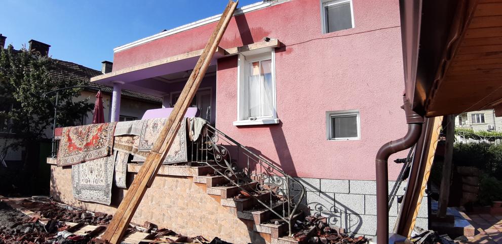БГНЕС Целият покрив на къщата е изумен, а вътрешността ѝ е наводнена.