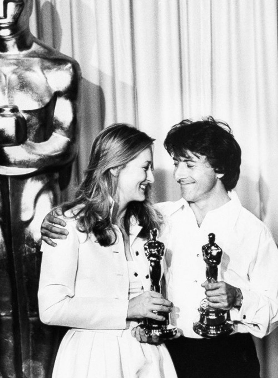 (Meryl Streep and Dustin Hoffman with their Oscars for Kramer vs Kramer at the Academy Awards, 1979)