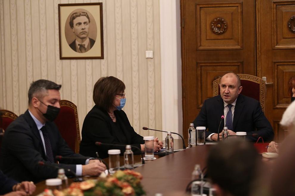 Лидерът на Българска социалистическа партия Корнелия Нинова уточни от своя страна: " Осъзнаваме отговорността сега. Много пъти сме посочвали, че България ни се нуждае от работещ парламент и постоянно държавно управление. Дадохме своята експертиза и своята воля за промени. Разговорите не престават и сега. Ще поставим старания до край за сформиране на държавно управление и да има работещ парламент. За нас е най-важно да се почне работа по бюджета, да не оставяме хората през зимните месеци в затруднено състояние, да подсигуряваме компенсатори ограничения за увеличените цени, да не позволяваме повишението на цените за електрическа енергия за битовите консуматори ".