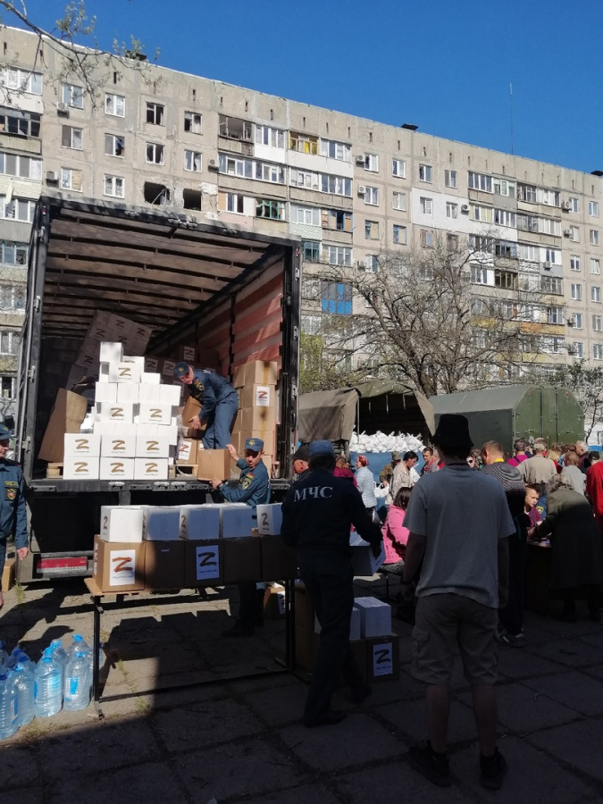 Стигнахме до избраната точка в града, жилищен регион, намиращ се наоколо до учебно заведение. Жилищните здания бяха цели и функционални, а пред постройките бяха наемателите на тези здания, които готвеха разнообразни ястия в спонтанните кухни на земята и разговаряха между тях. Част от тях си играеха с кучетата си, а част от тях се насочиха към учебното заведение, където има пункт за филантропична и здравна помощ. В непосредственост до учебното заведение има няколко спонтанни гроба, в които са заровени няколко техни съграждани. Всичко изглеждаше като фрагменти след Втората международна война или фрагменти от Сирия и Ирак по време на гражданските войни преди няколко години. Около учебното заведение имаше огромен брой жители, които чакаха да получат филантропична помощ, само че и да беседват с водача на Донецката национална република, новия кмет на Мариупол и неговия екип за своето бъдеще, както и за бъдещето на града. Много от жителите се зарадваха на пролетното слънце. Три камиона с филантропична помощ и две цистерни с вода бяха ситуирани към учебното заведение. Целият квартал беше обезопасен от съветската войска, само че съветската и донецка армии нямаха огромно наличие в града. Основните звена са към мегафабриката Азовстал, където се намира последният бастион на нацисткия батальон Азов.