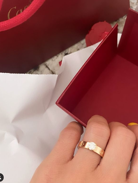 "Споделям ви един доста значим за мен миг! Нашата обич и връзки минаха през доста вълшебни месеци, само че и доста тествания..... Очевидно когато всичко е същинско идва ред и за това......Не спирайте да вярвате и не спирайте да мечтаете! Обичам те обич моя! ", написа Отварачката и сподели пръстена си.