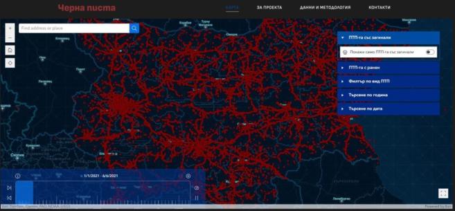 Поводът беше злополуката в Айтос. Замислих се за какво няма място, където човек да види къде в България се случват най-вече произшествия. „ Черна писта “ е интерактивна карта, основана на публични данни от Министерство на вътрешните работи, която пресъздава над 177 хиляди катастрофи, с близо 25 хиляди ранени и 1 478 починали. Всяка алена точка на картата е една злополука. Когато я отвориш, мащабът на казуса безусловно те зашеметява.