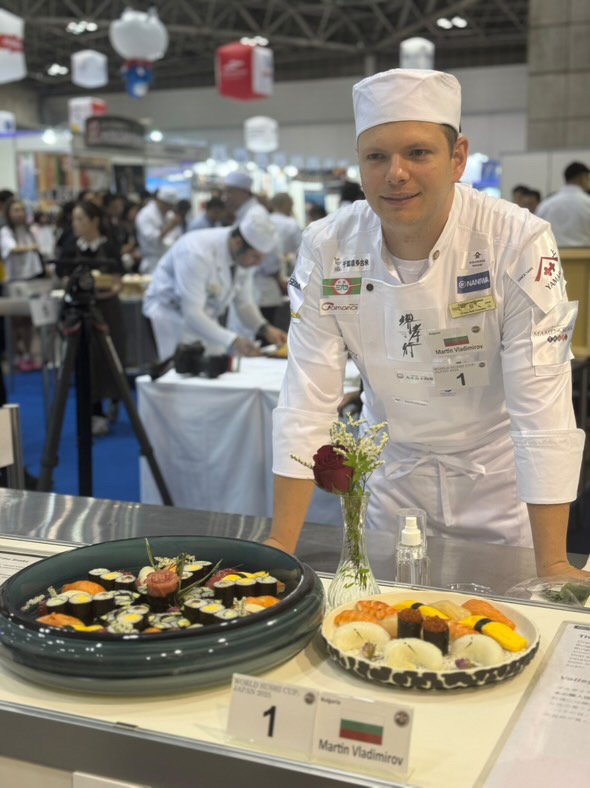 Мартин Владимиров е първенец от Sushi Cup Bulgaria 2024, формалната национална подготовка на World Sushi Skills Institute (WSSI), която му даде правото да показа България на World Sushi Cup Japan 2025 в Токио (20–22 август).