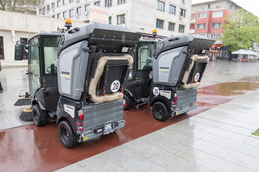 Машините, с които ще чистят и мият площада и пешеходната зона на бул. „ Цар Симеон Велики “ бяха показани през днешния ден в Стара Загора. Те са с прикачен инвентар - по 3 четки, които могат да чистят с разнообразни обороти на въртене, а едната има и приставка за миене.
