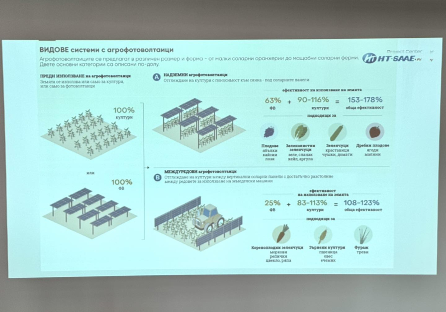 В взаимозависимост от размера и разположението на слънчевите панели, сходна апаратура може да усили коефициентът на потребно деяние на земята до 178 % спрямо имоти, които се използват отделно за слънчеви или селскостопански цели ”, написа зам.-кметът Владимир Темелков.