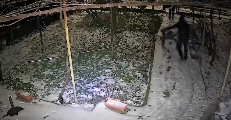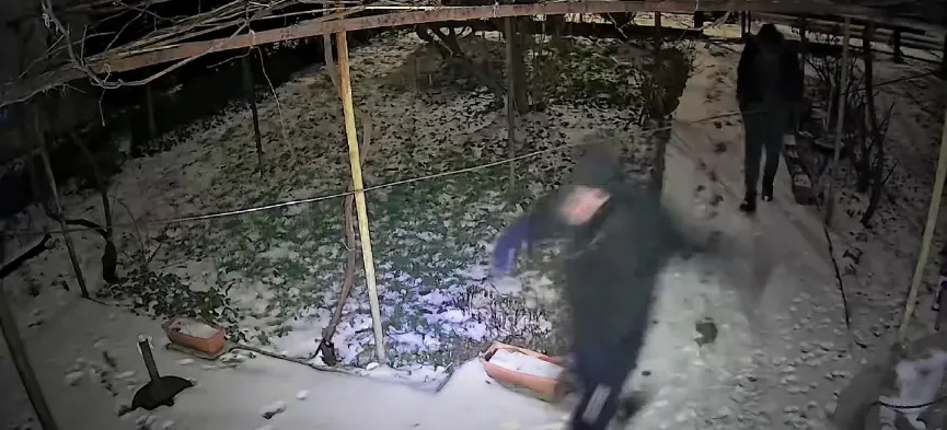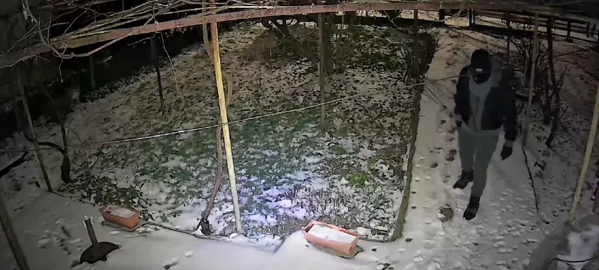 Маскирани мъже проникнаха в двор на къща в Добрич и откраднаха дървен топ, като дейностите им бяха снимани от камера за видеонаблюдение.