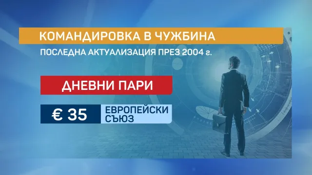 Сумите са избрани в разпоредба, последно обновена през 2008 година. Ако командировката е в чужбина - за съвсем всички страни от Евросъюза размерът на дневните пари е 35 евро. Сумата не е променяна от 2004 година.