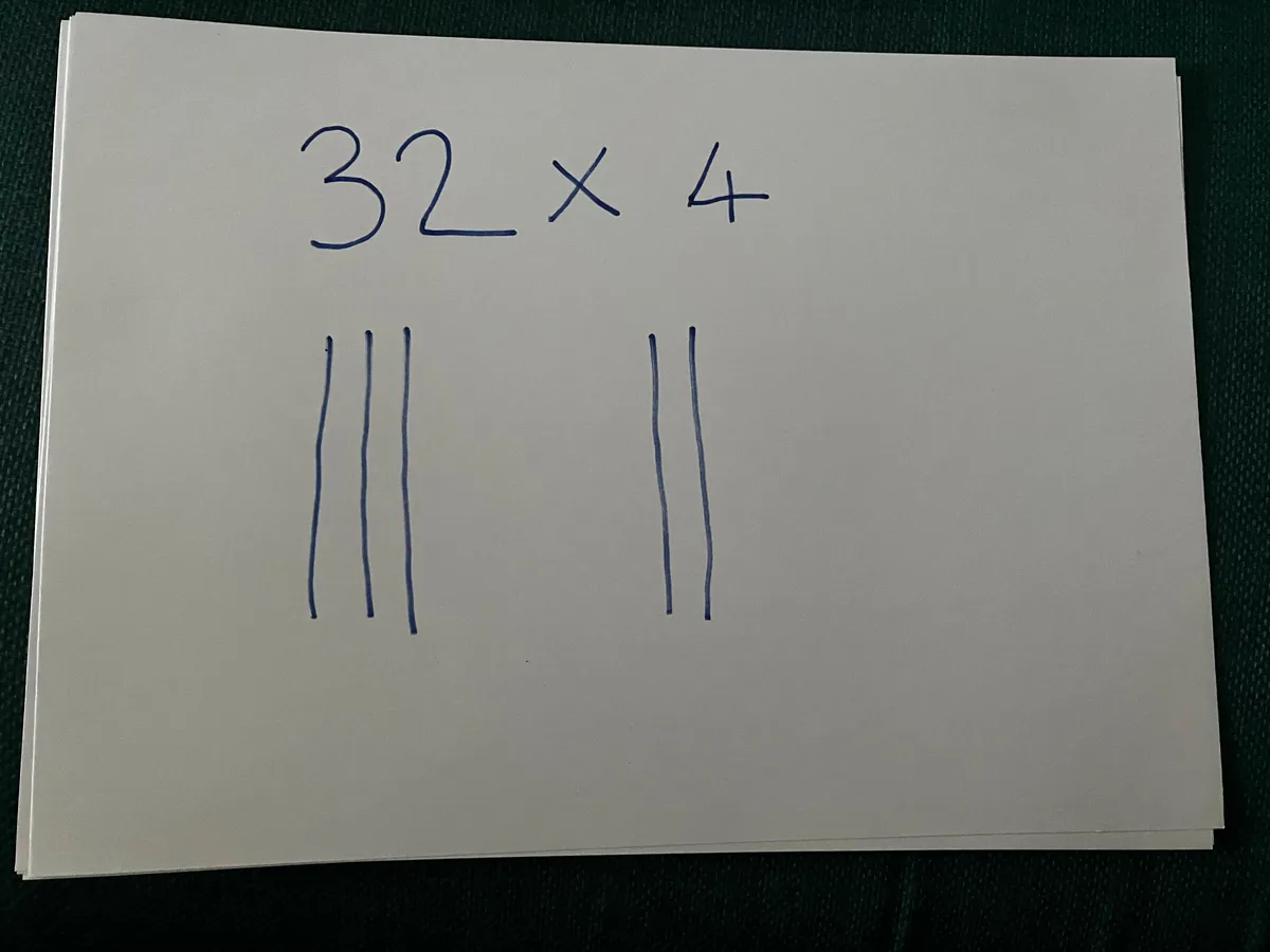След това през тях начертаваме 4 черти – за другия множител.