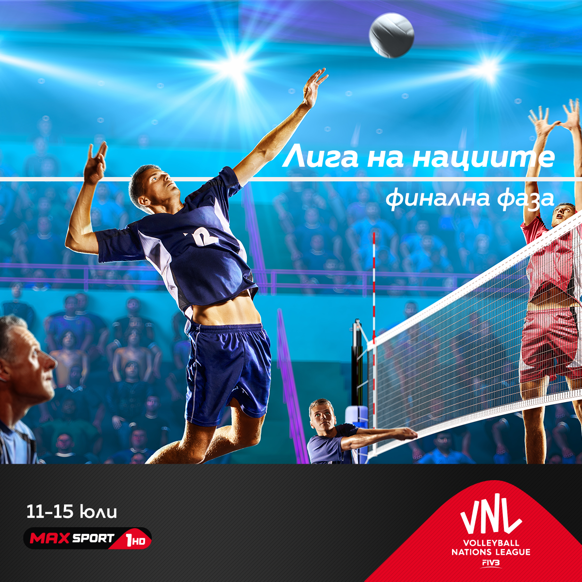 MAX Sport 1 ще излъчи директно финалния шампионат, който ще дефинира първенеца в мъжкото издание на волейболната Лига на нациите за 2019 година Домакин на конкуренцията е американският град Чикаго, а шестте тима финалисти са Бразилия, Иран, Русия, Франция, Полша и Съединени американски щати.