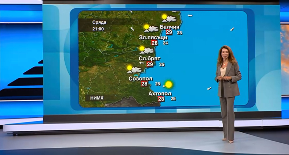 Черноморието ни продължава да предлага чудесни условия за плаж, зарадва тя. Утрешният ден ще премине с доста слънце и с сдържан морски бриз. Температурата на въздуха ще остане малко под 30 градуса, а морската вода е 25.