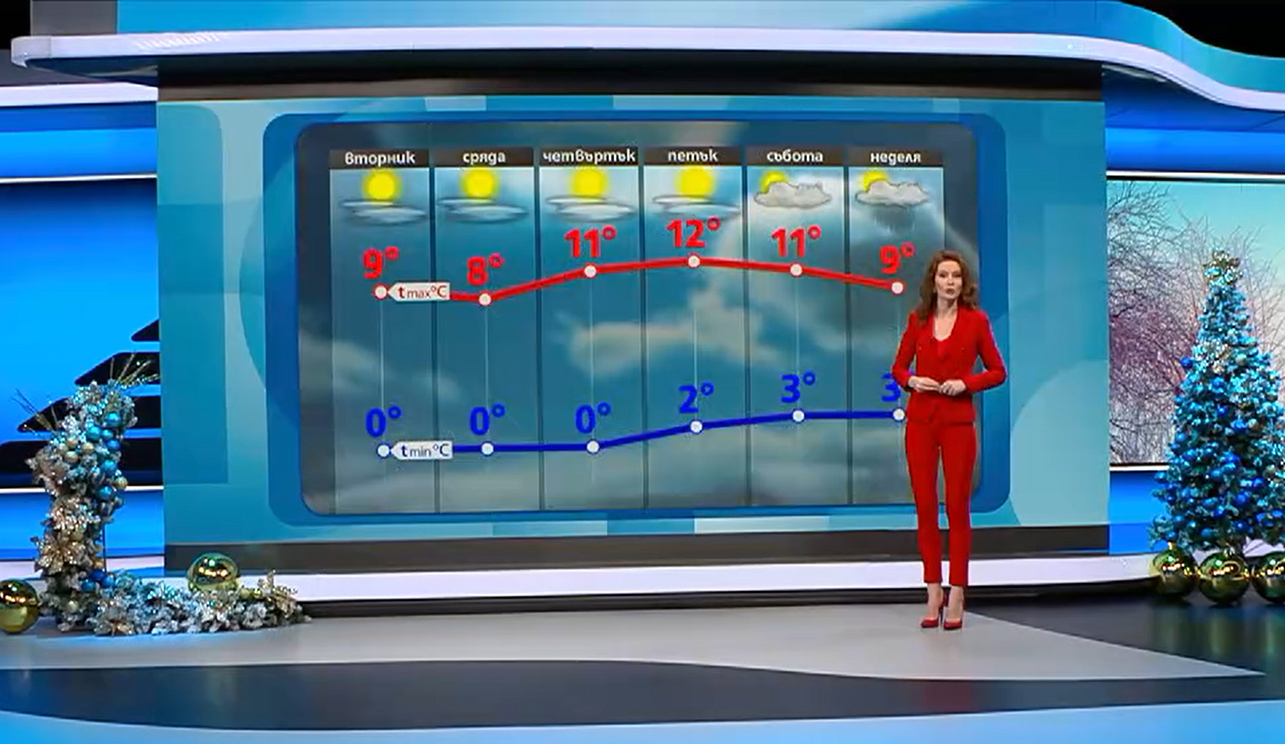 Засега декември месец продължава с време без изненади, облечете се топло в случай че ще излизате рано заран, посъветва синоптичката на Нова телевизия, Гергана Малкоданска.