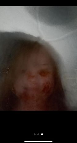 И показва размазаните фотоси на дъщеря си, на една от които момиченцето като че ли е с окървавено лице.