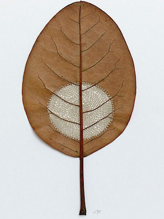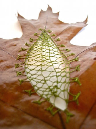 Майсторката на фини бродерии Hillary Fayle умее да свързва нишките на тъканта с нишките на листата. С изключителна точност и внимание към детайла, тя бродира изкуството на живота в невероятни композиции. Красивите мъртви листа се прераждат в ръцете на Хилъри, която внимателно им вдъхва живот. За да се запази целостта и гъвкавостта им, художничката ги фиксира с нетоксичен консервант и бродирането стартира. „ Предпочитам изкуството ми да употребява натурални хубости и артикули от природа, по тази причина листата са прелестна опция ”, споделя Хилъри.