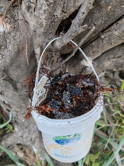 „ Тъй като беше хладно и мазутът е релативно корав, измежду боклуците от плажа открих кофичка, изпълних я с по-едри части мазут, само че остана още доста за събиране “, добавя Савов.