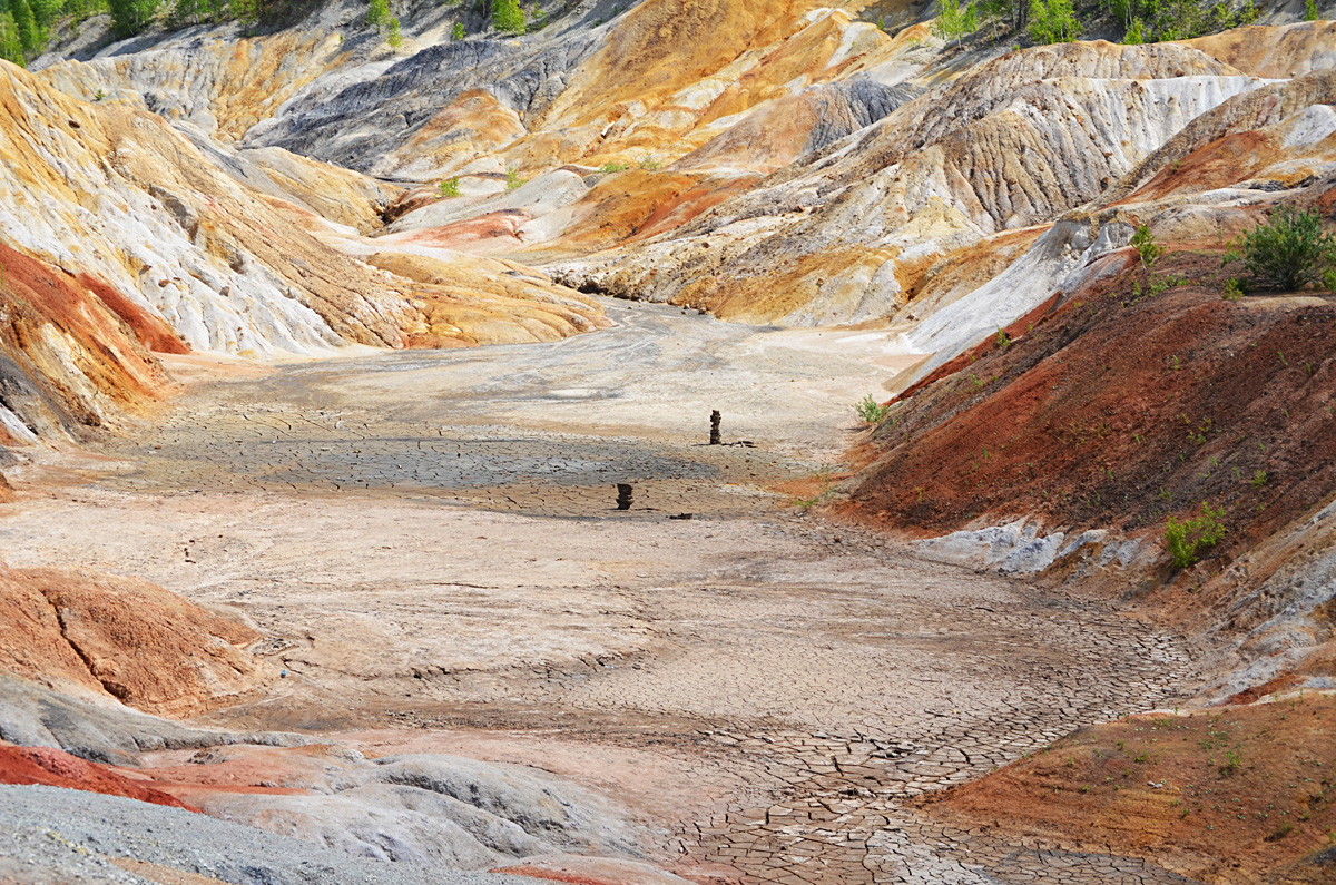 В продължение на десетилетия тази вода образува пукнатини в глината и в кариерата се образуват голям брой глинени купчини с теракотен цвят във формата на раковини.